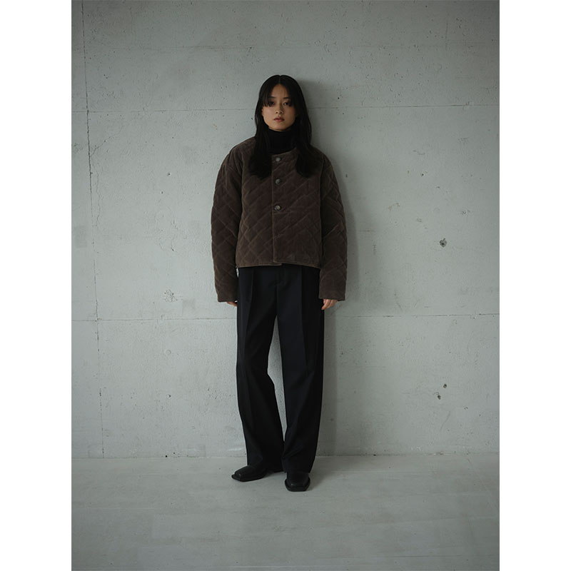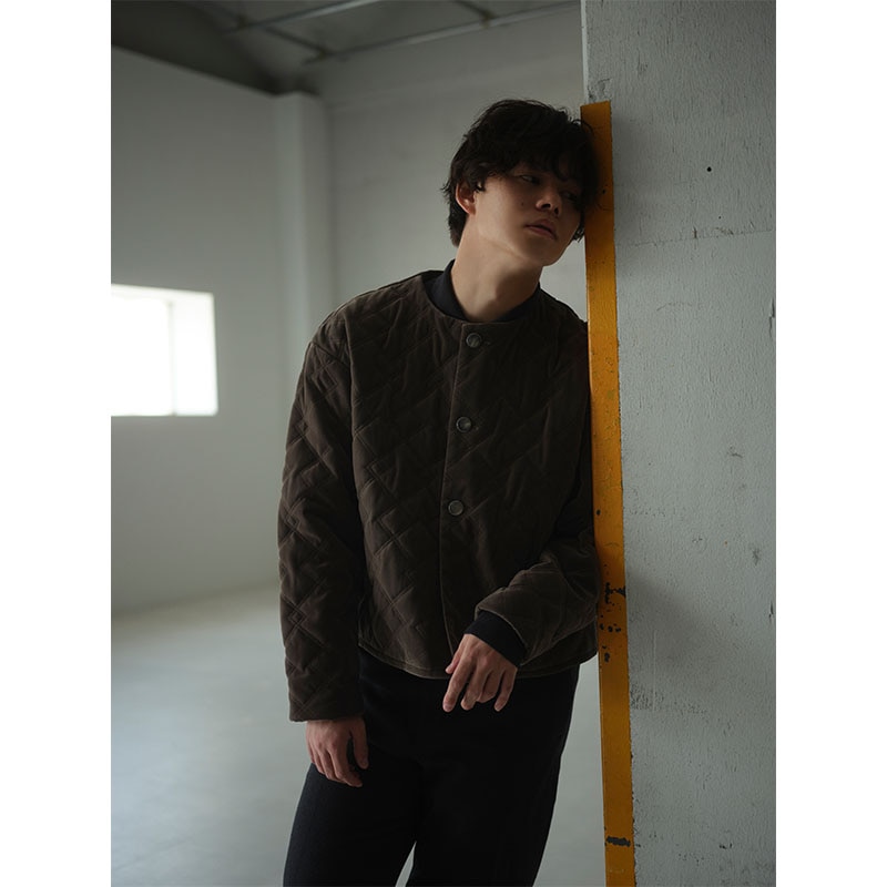 程よい光沢感のあるベロアを使用したキルティングジャケット。
