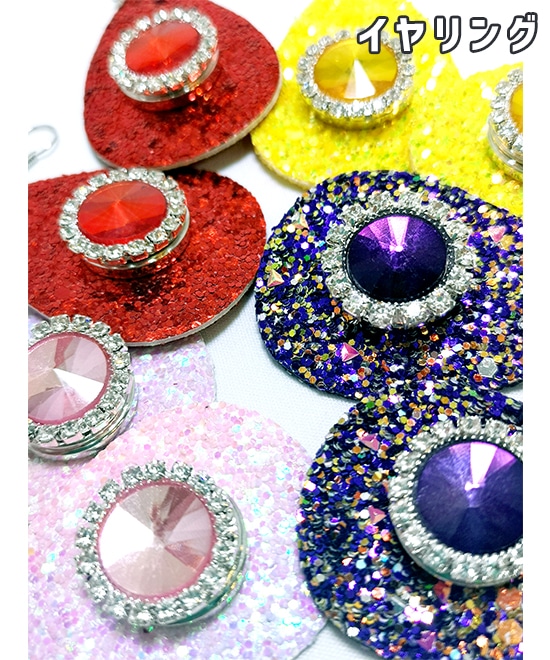 大き目のグリッターピアス&イヤリングはまるで衣装の一部のようなデザインに!