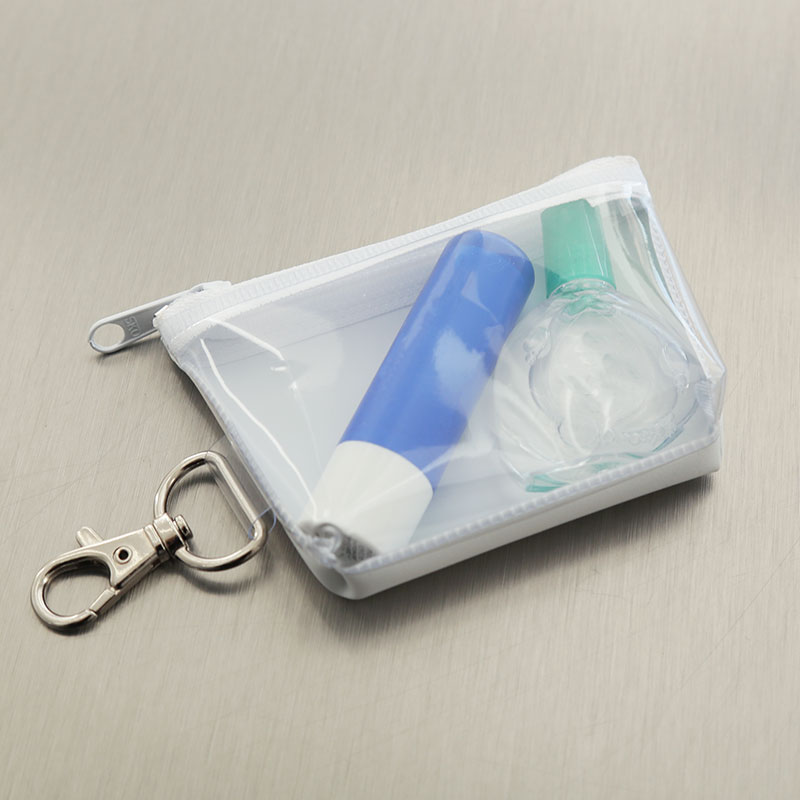 片面が透明なので中身が分かりやすく、金具付きなのでカバンなどに取り付けても使用していただけます!