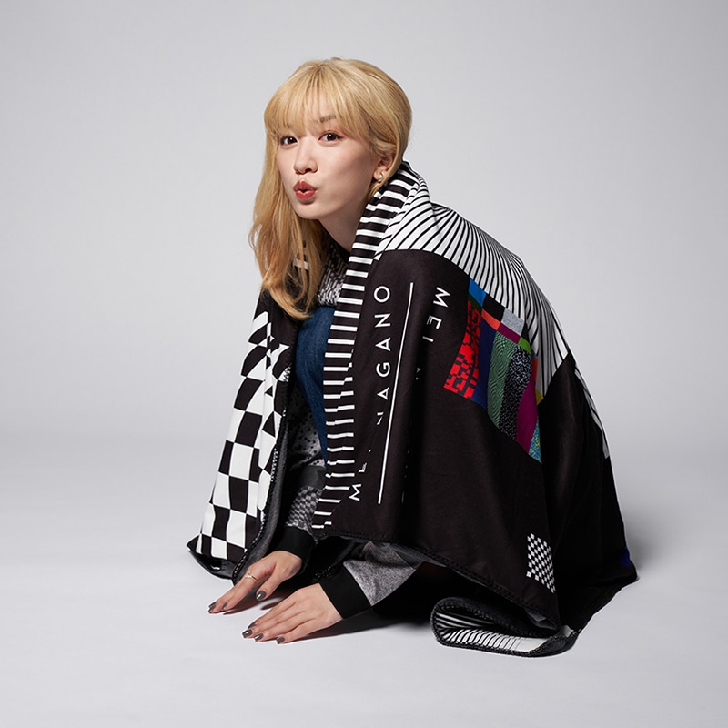 『非公開』のキービジュアルのデザインをイメージした大胆な柄が目を惹くブランケット。