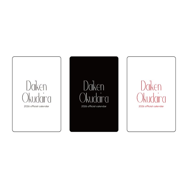 「奥平大兼オフィシャルカレンダー2026」のアザーカット3枚を使用しています。 スマホケースにも入るサイズ感です。