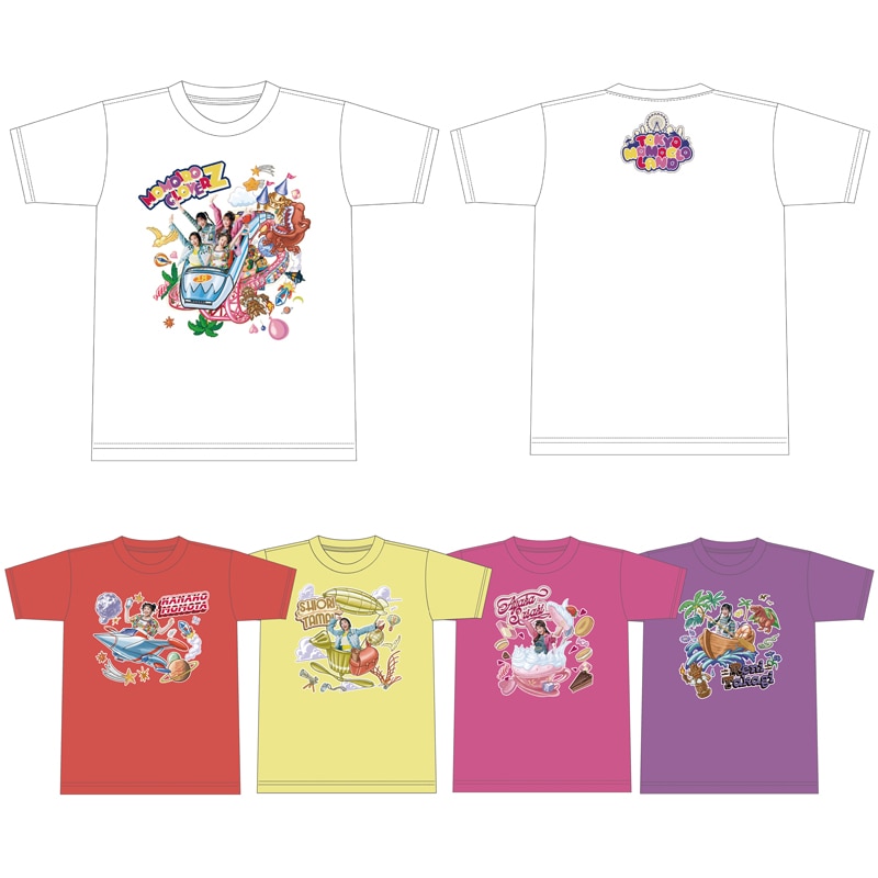 メンバーが「東京ももクロランド」のアトラクションに乗ったポップなデザインが魅力の1枚。春らしいカラーでコーデに取り入れやすく、デイリーにもライブにも活躍します。